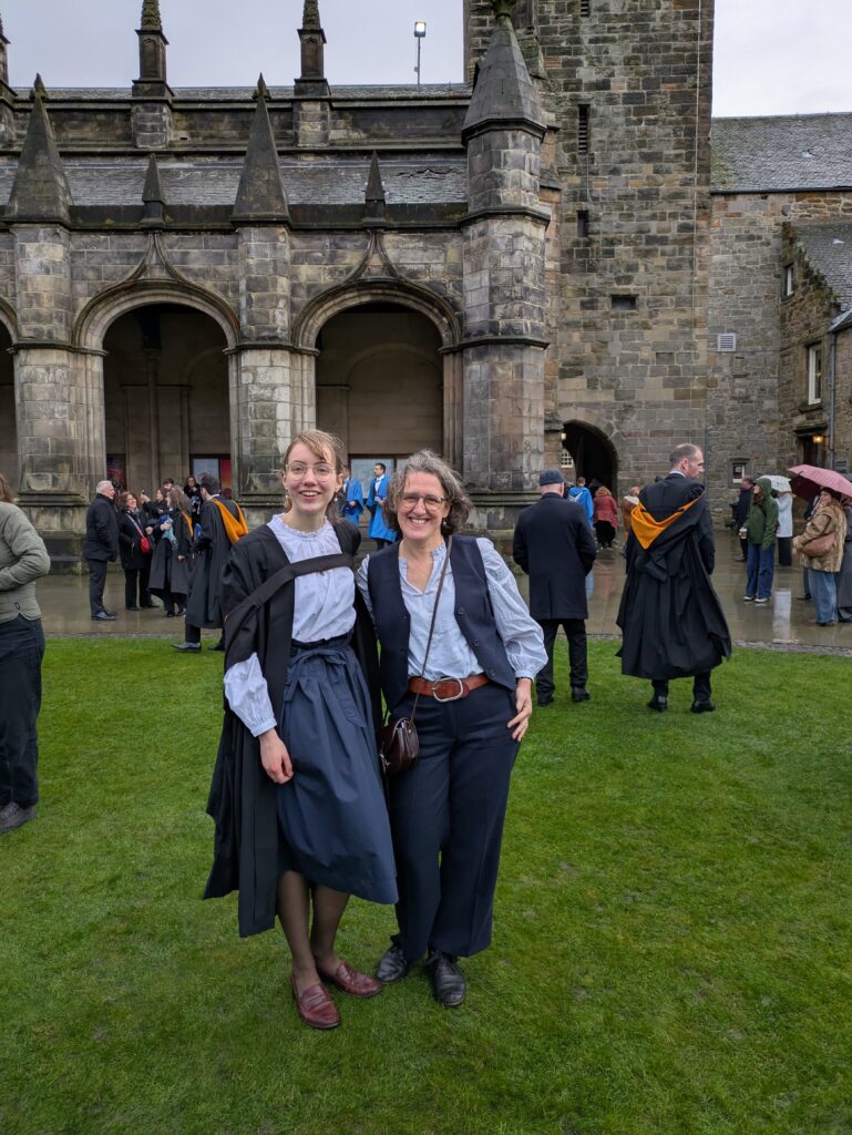 With Sarah Mackenzie from Readaloudrevival (many of you homeschoolers are following her on instagram. I happen to walk into her at Marijke’s graduation in St. Andrews.